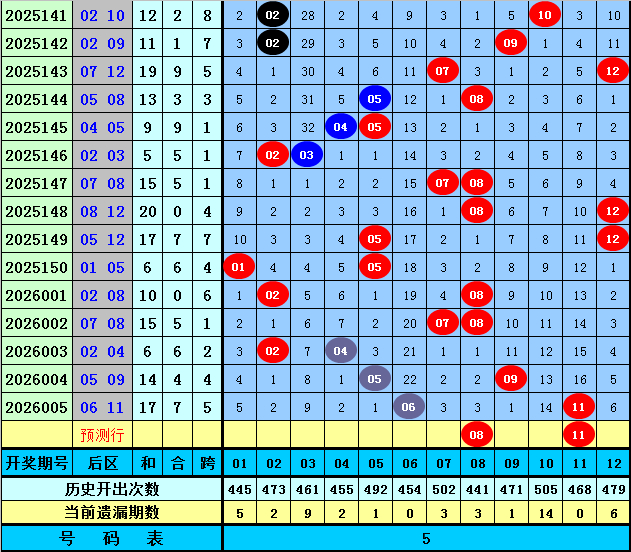 后区分析:在第006期历史同期开奖中,后区奖号奇偶比为20:18,最近5年同期后区奇偶走势为:一奇一偶、一奇一偶、一奇一偶、全偶、一奇一偶,今年同期看好再出一奇一偶组合,关注号码08、11。